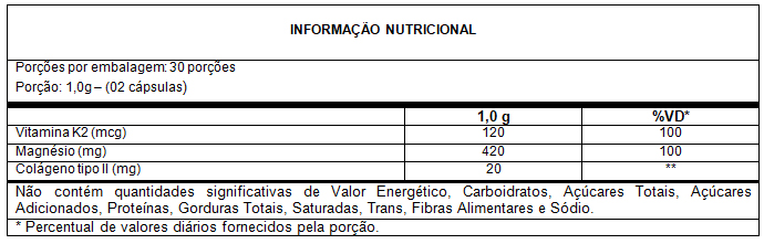 Vitamina K2 + Colágeno Tipo II + Magnésio MgCI 2 - 60 Cáps. 500mg
