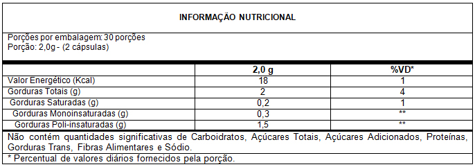 Fonte de Lipídeos, Ácido linoleico n-6 e Ácido Alfa-linolênico n-3. Acelera o metabolismo induzindo o organismo a utilizar a gordura como fonte de energia.